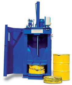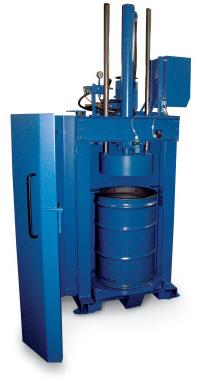 The AVERMANN drum press is suitable for pressing empty sheet metal drums with a capacity of up to 200 l for the reduction of volume. Using an insert, also tins and paint buckets can be pressed.